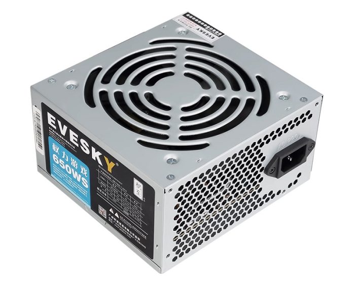 evesky POWER SUPPLY 650ws,12v 360w, 24PIN MOTHERBOARD 1X, 8PIN CPU 1X, 6+2 PCIE 1X, SATA 3X, MOLEX 2X