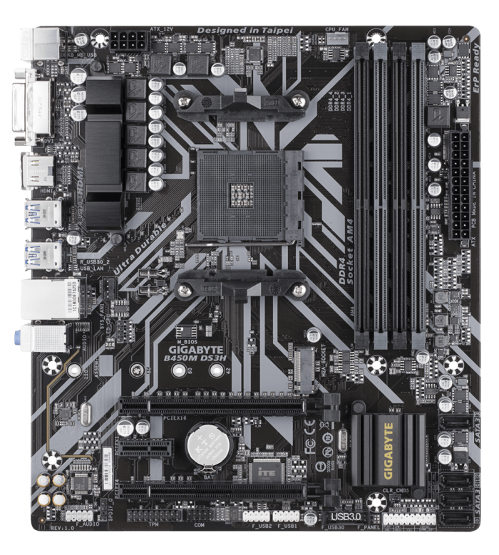 GIGABYTE B450M DS3H, 4xDDR4, 1xPCI-Ex16, 1xM.2