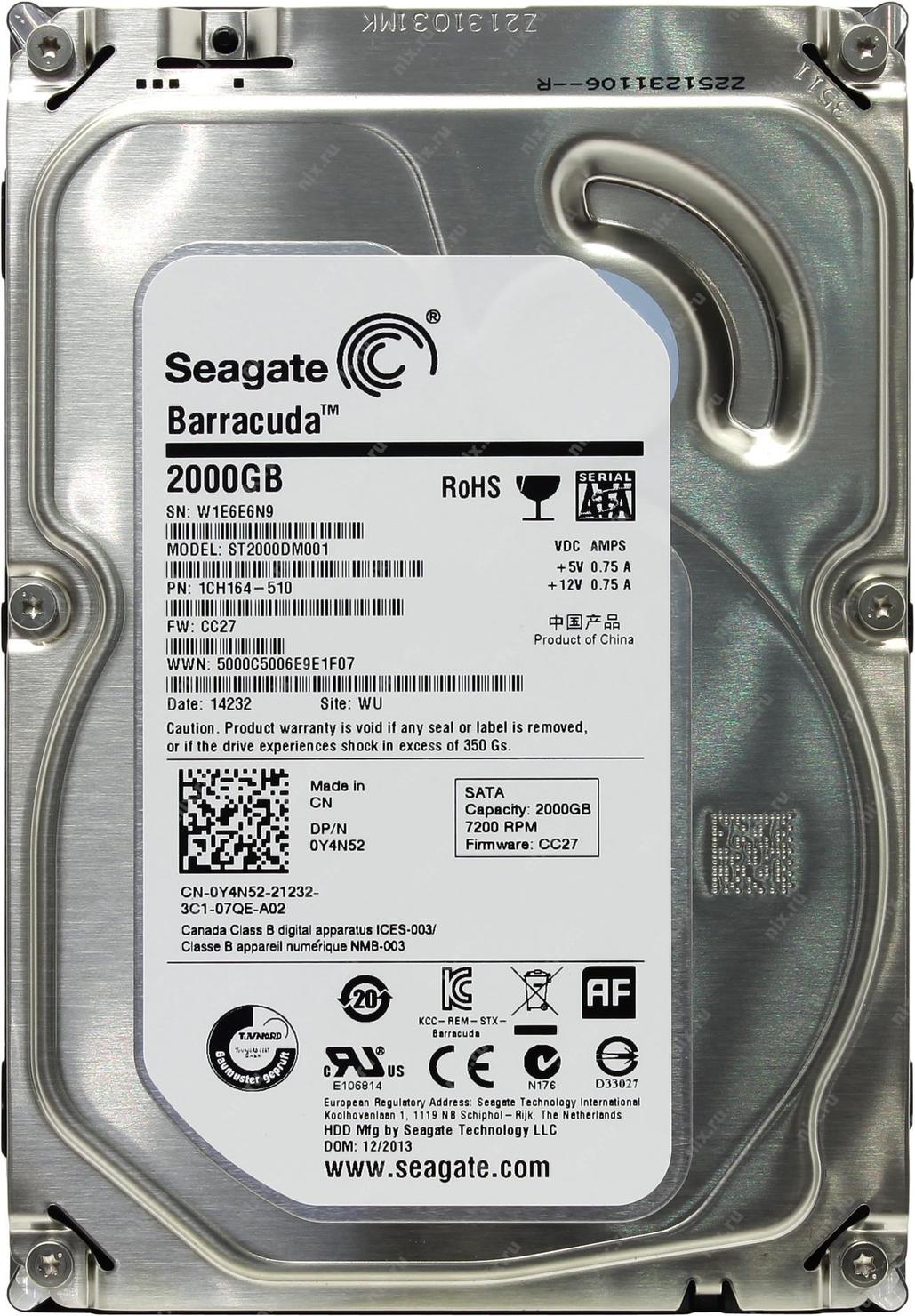 Seagate Barracuda ST2000DM001 , 2TB, 3,5″, Cache: 64MB, Rotation Speed: 7200 RPM